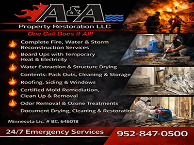 A & A Property Restoration is a general contractor with 30 years of proven experience repairing properties damaged by fire, water, storms, or mold. Just one call can take you from immediate emergency response through the complete rebuilding of the property.