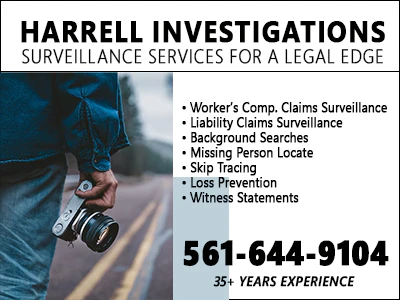 Worker’s Compensation & Liability Claims Surveillance Infidelity Surveillance Covert Surveillance Operations Comprehensive Background Searches Criminal History Searches Missing Persons Locate & Skip Tracing License Tag/Plate Info Search Vehicle ID & Ownership Record Search Loss Prevention Basic Asset Liability Report Basic Locate Report Witness Statements Activity Check