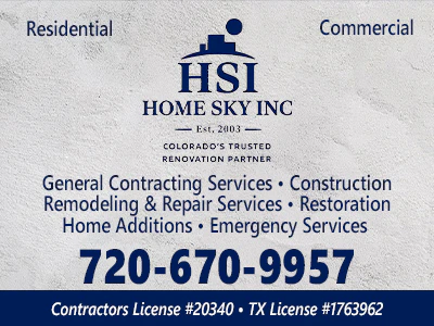 Homeskyinc.comLogin to View E-Mail AddressFacebookArapahoe, CODouglas, COJefferson, COBathroom RemodelingContractors GeneralElectrical ContractorsFloor Contractors & BuildersGutters & DownspoutsHeating & Air Conditioning ContractorsKitchen RemodelingRemodeling & Repair Building ContractorsRoofing ContractorsWindows